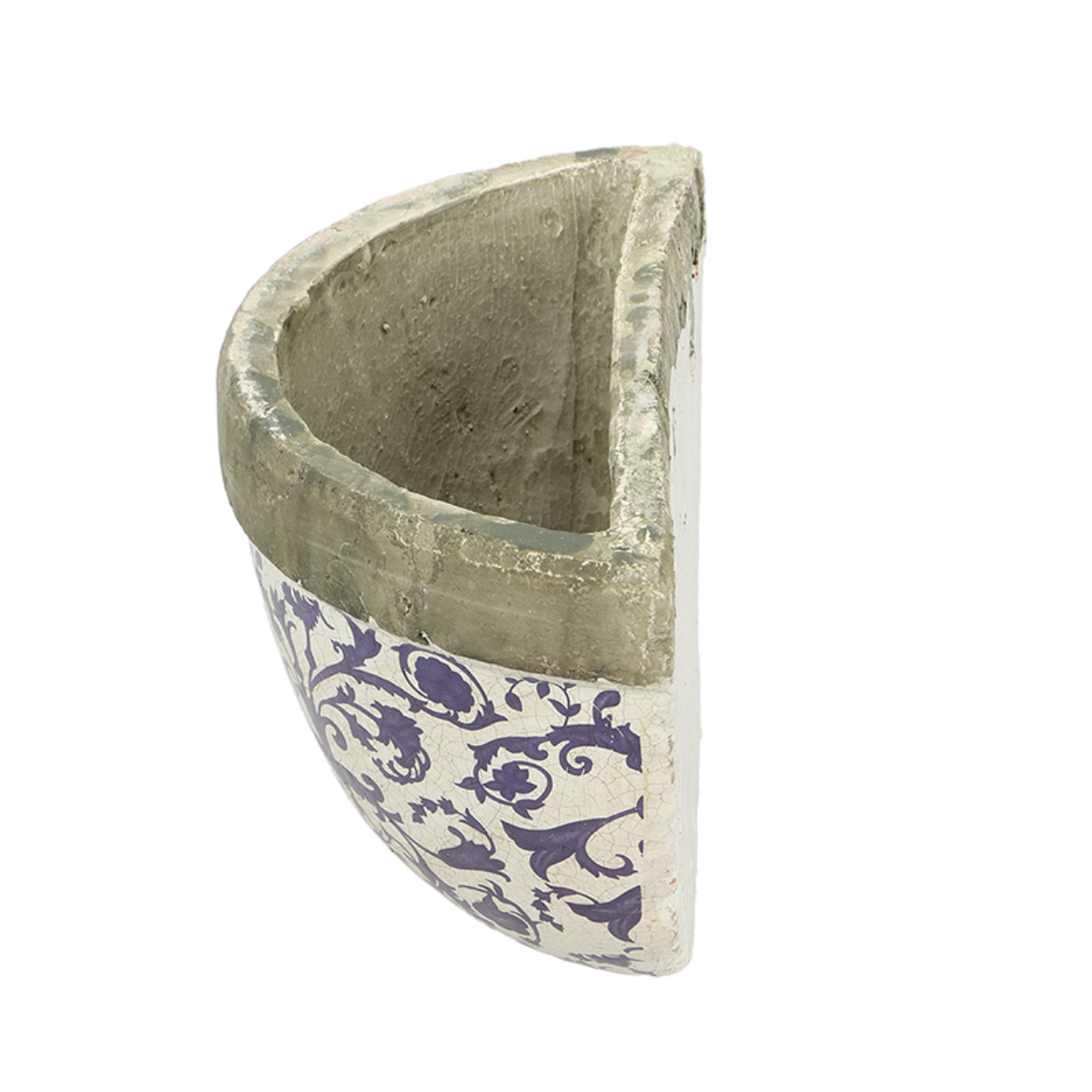Ceramiczna półokrągła doniczka ścienna. Pojemność: 1,2 litra. W tylnym panelu znajdują się dwa otwory do zawieszenia doniczki ściennej za pomocą śrub. Śruby nie są dołączone. Wymiary: 27x12x18cm