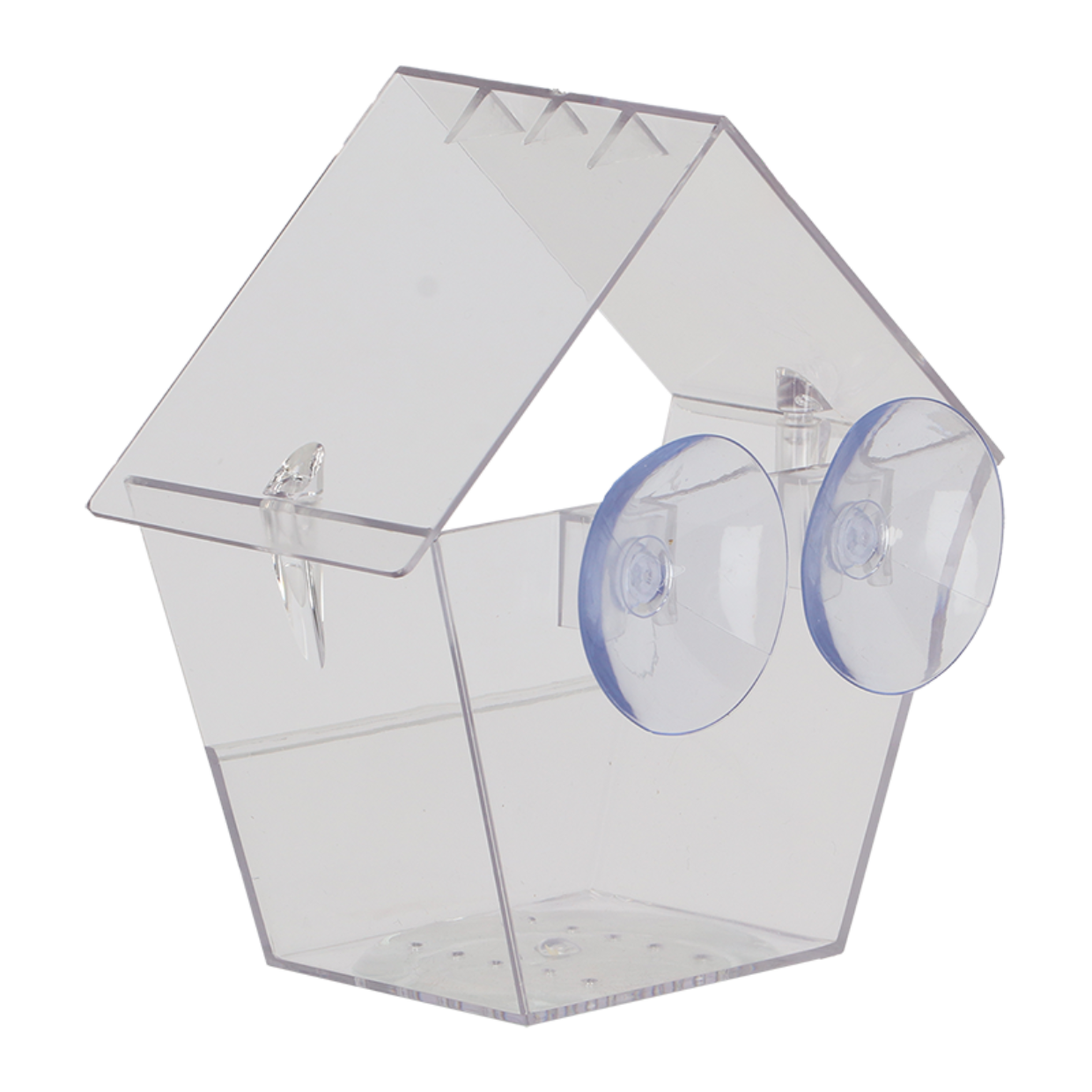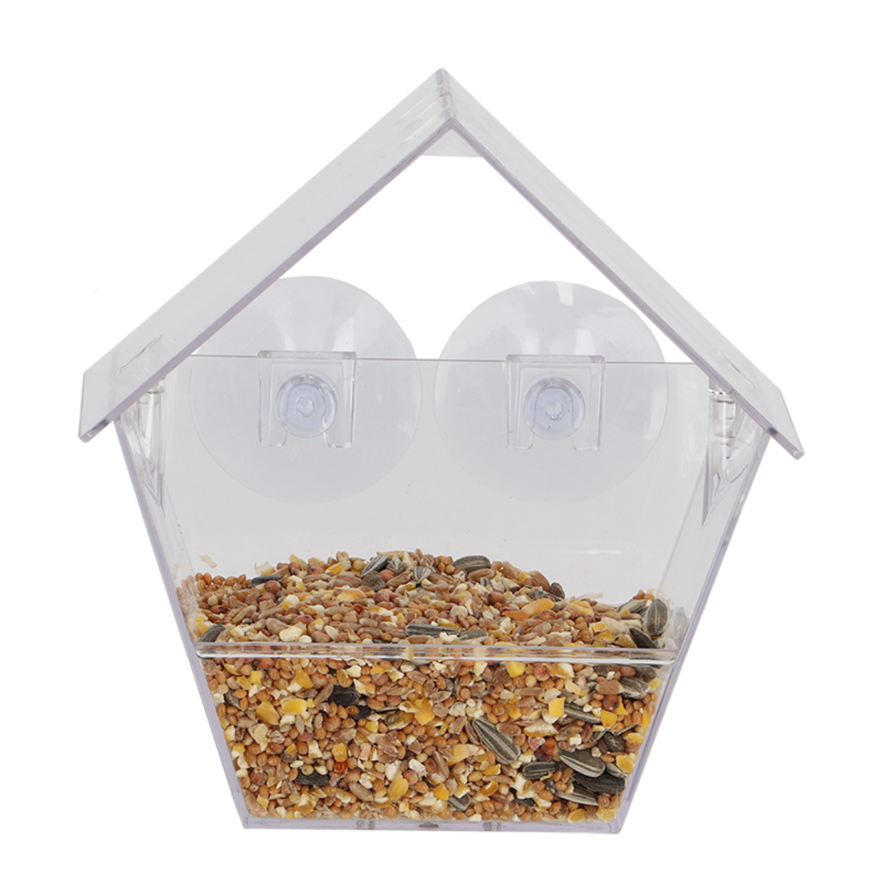 Ten karmnik okienny ma przezroczyste ścianki i dach, dzięki czemu ptaki można łatwo obserwować. Karmnik można przymocować do okna za pomocą przyssawek. Wymiary: szerokość 14,7cm, wysokość 15,3cm