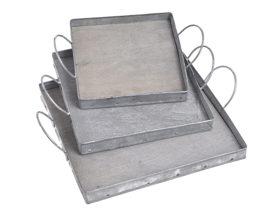 Zestaw 3 tac dekoracyjnych z drewna z aluminiowymi okuciami i uchwytami