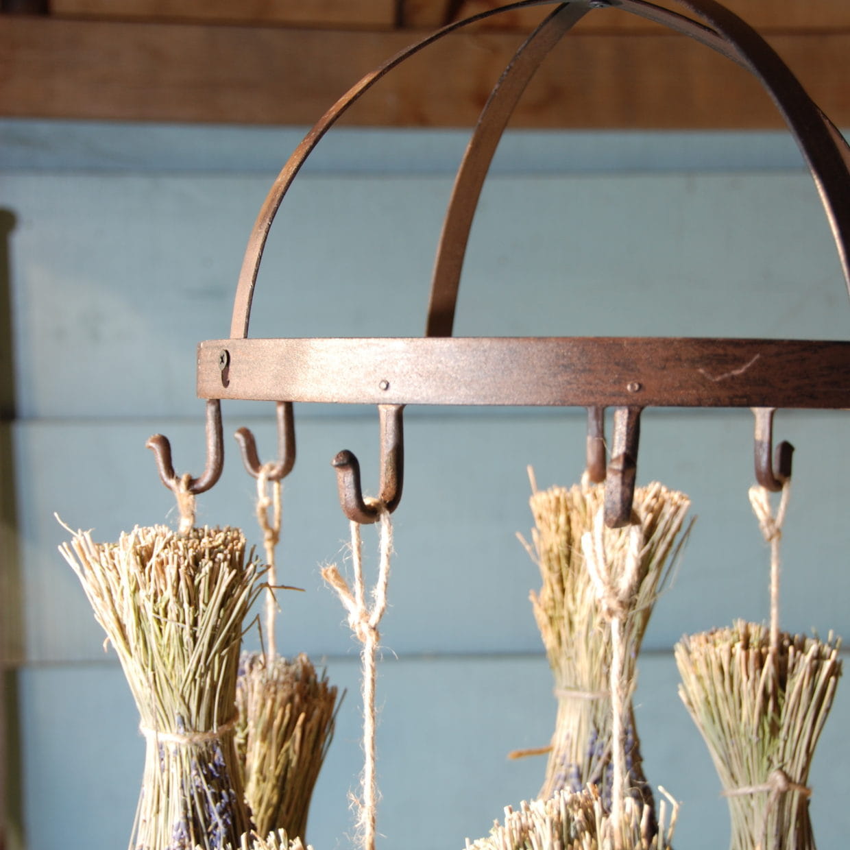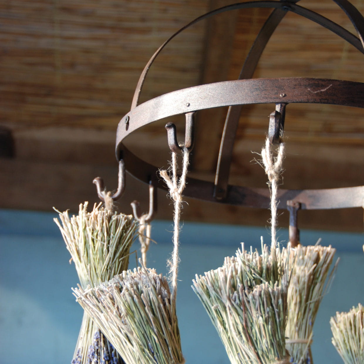 Zioła są pyszne i można je również używać po wysuszeniu. Zwiąż świeże zioła lub kwiaty sznurkiem i powieś je do góry nogami na hakach tej suszarki do ziół. Oprócz tego, że suszenie ziół i kwiatów samo w sobie wygląda dekoracyjnie, po wysuszeniu można je wykorzystać do gotowania lub w bukietach. Ponadto wieszak ten można również wykorzystać do dziczyzny lub suszonych szynek i tym podobnych. Zawiera 8 haków do zawieszania. Wymiary: 37x37x29cm